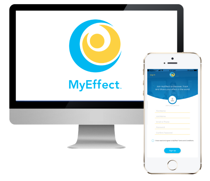 With its beautifully simple design, MyEffect's mobile app helps you keep track of your impact.